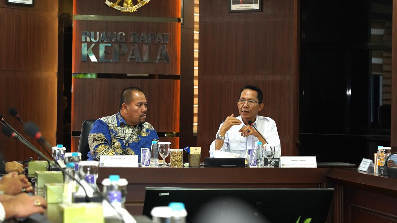 BATAM | Kepala BP Batam Amsakar Achmad menerima kunjungan kerja Bupati Batu Bara Baharuddin Siagian pada Rabu (21/1/2026) guna mendiskusikan transformasi infrastruktur air dan strategi penguatan ekosistem investasi, di Ruang Rapat Lantai 8, Gedung Annex BP Batam.