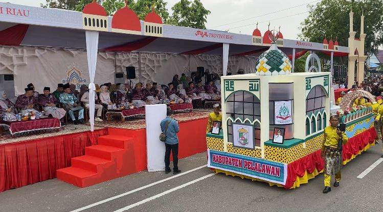 Pawai ta’aruf yang dilepas langsung oleh Gubernur Riau, H. Abdul Wahid, berlangsung meriah dan semarak. Ribuan peserta dari berbagai kabupaten dan kota se-Provinsi Riau ambil bagian, termasuk kafilah dari Kabupaten Pelalawan yang tampil penuh semangat dan kekompakan.
