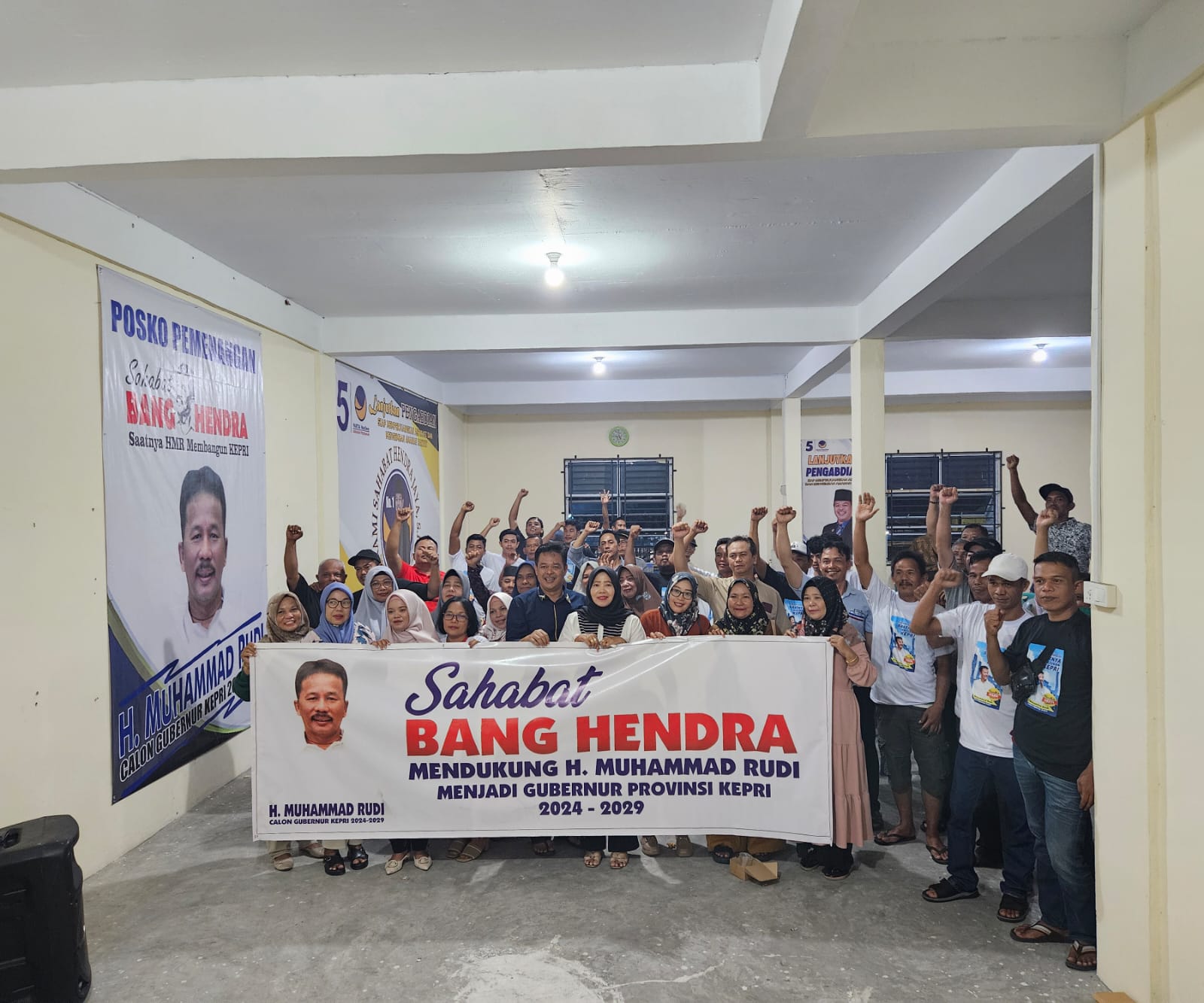 “Malam ini, saya meminta sahabat dan teman teman agar menjadi satu tim untuk memenangkan calon Gubernur Kepri H.M Rudi di Pilkada 2024,” tegas Hendra Jaya di hadapan relawan yang datang dari 5 kelurahan di Kecamatan Tanjungpinang Timur.