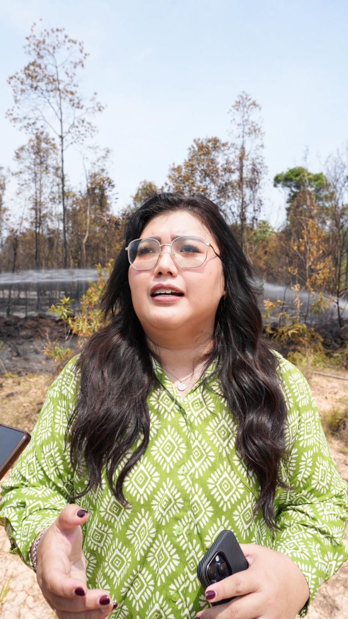 BATAM | Anggota/Deputi Bidang Pelayanan Umum BP Batam, Ariastuty Sirait meninjau lokasi kebakaran hutan lindung di kawasan Waduk Nongsa, Jumat (27/3/2026). Ariastuty memantau langsung proses pemadaman dan memastikan langkah penanganan yang dilakukan telah berjalan dengan baik.