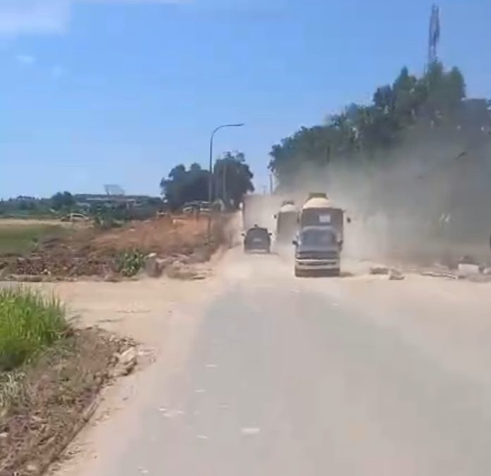 BATAM | Aktivitas mobil dump truk pengangkut galian tanah yang melintasi Jalan Cecek, Kelurahan Sungai Lekop, Kecamatan Sagulung Kota Batam menyebabkan pengendara lain merasa tidak nyaman.